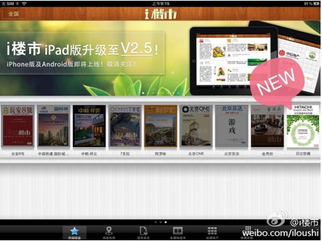 同时,为了方便高端人群的阅读习惯,日立变频中央空调专刊还特别推出iPad版,读者可以在iPad上登陆 APP STORE, 搜索“i楼市”即可免费下载。通过iPad版本,读者可以随时随地与厂商进行在线互动,发送自己对于产品的祝福、期许以及建议到互动平台;并可点击ipad版上的网址进入海信日立官网,实时查询日立全系列中央空调及解决方案的相关信息,及丰富多彩的最新产品活动进展。